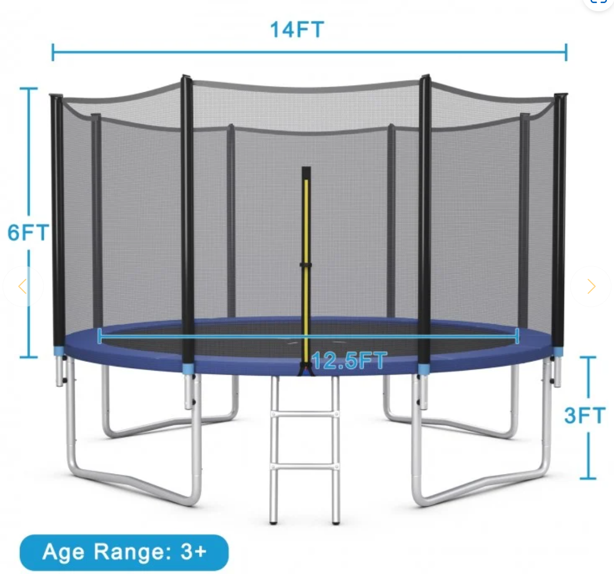 • *8/10/12/14/15/16 Feet Outdoor Trampoline Bounce Combo with Safety Closure Net Ladder - 14 ft