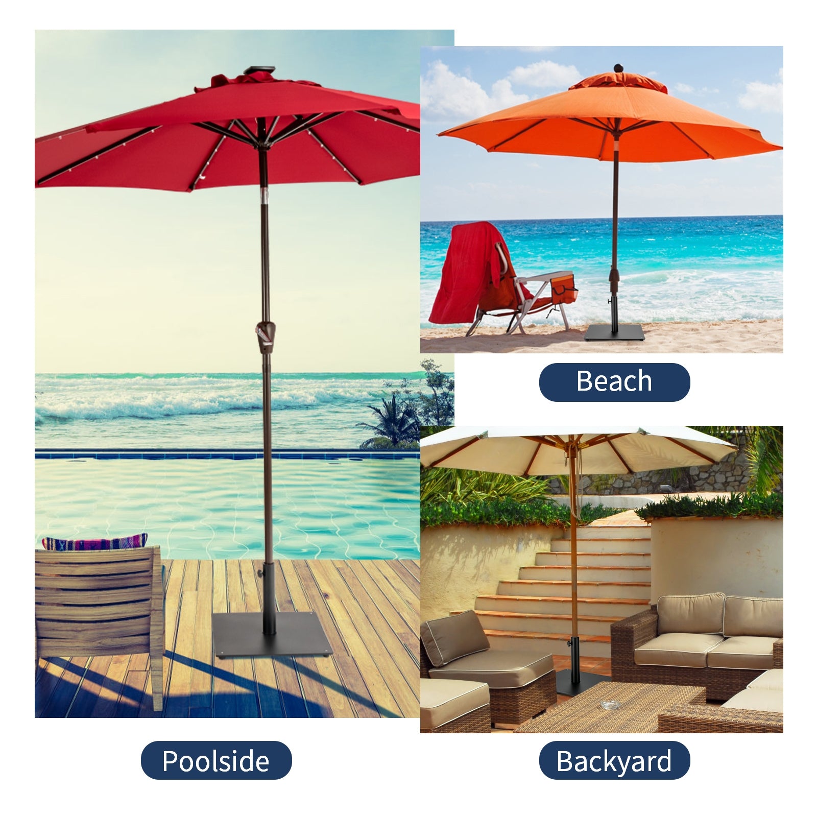 - Accommodate sizes to 1.4’’/1.5’’/1.9’’ diameter umbrella poles