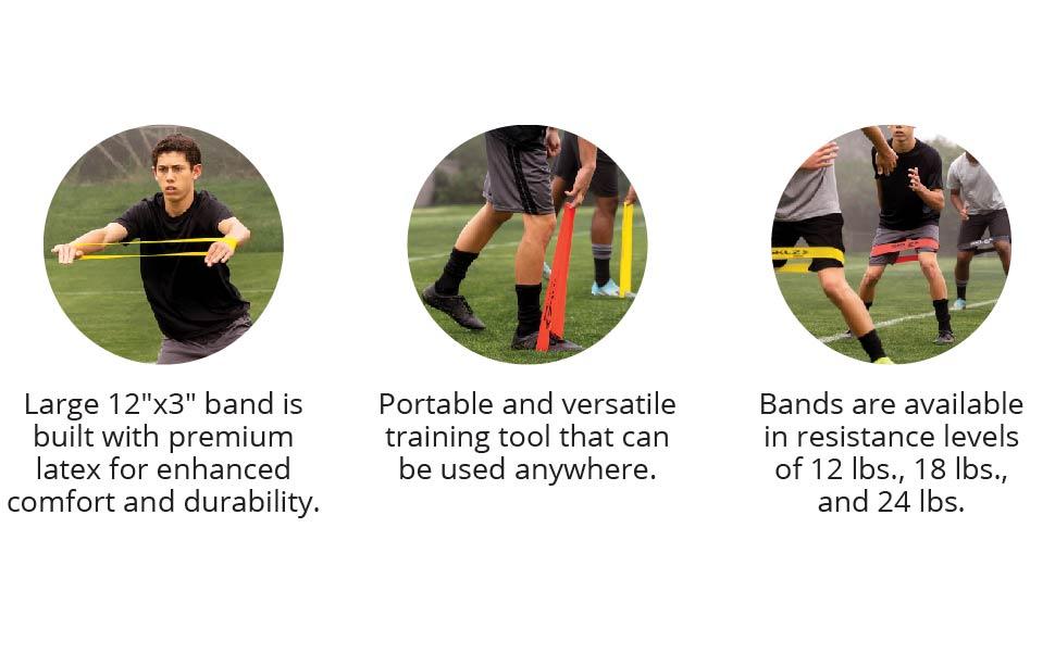The Elite Mini Bands are an ideal training tool for upper and lower body resistance training. Built with large 12”x3” premium latex for enhanced comfort that helps to minimize pinching or pulling and adds more durability to hold up through tough workouts. The resistance bands assist in effectively increasing difficulty of standard exercise movements to help develop strength, mobility and improve proper form standards. Typically used for lateral movement exercises, hip and glute activation, and shoulder stabilization, the bands can add a versatile element to your workout. They are also great for warming up and activating muscles before exercising. Their 3” width can make them a great tool for physical therapists to utilize for rehabilitation, particularly in the lower joints like ankles and knees. The Elite Mini Bands are a portable and versatile training tool that can be used anywhere and packed in any bag. They are available in three different resistance levels of 12, 18, and 24 lbs.