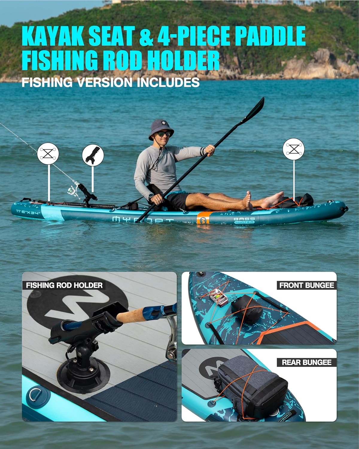 【COMPLETE PADDLEBOARD KIT & 24H SERVICE】All professional accessories: Fishing rod holder, kayak seat, safety leash, hand pump, 3 removable fins, length-adjustable strong paddle, mobile phone waterproof bag, 5L waterproof backpack. Stand up inflatable board is perfect for professional athletes, sea sports enthusiasts, beginners, elder players, and youth. MYBOAT offers 1 year warranty for your order, if any questions, please feel free to contact us!