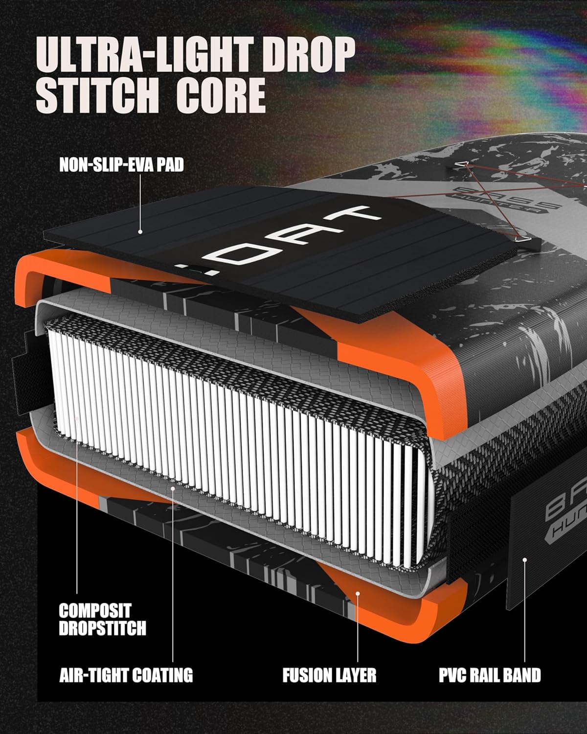 【Durable & reliable】 The MYBOAT inflatable paddle board is crafted from strong military-grade drop-stitch fabric, guaranteeing exceptional durability. It can withstand diverse water activities, be it on a lake, beach, or even rapids, while ensuring stability and safety. Whether you're a novice or an experienced paddler, our inflatable paddle board offers a long-lasting user experience, enabling you to fully enjoy your water adventures.