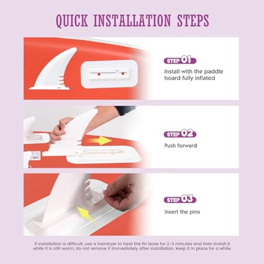 - 【Powerful Features】The multi-functional camera mount allows you to take your camera out on the water and capture the moments of surfing, paddling or other water activities. We use the new upgraded fins. The fins can be installed in seconds and paddle effortlessly into the fin base, making it easier for you to install and quicker to remove.