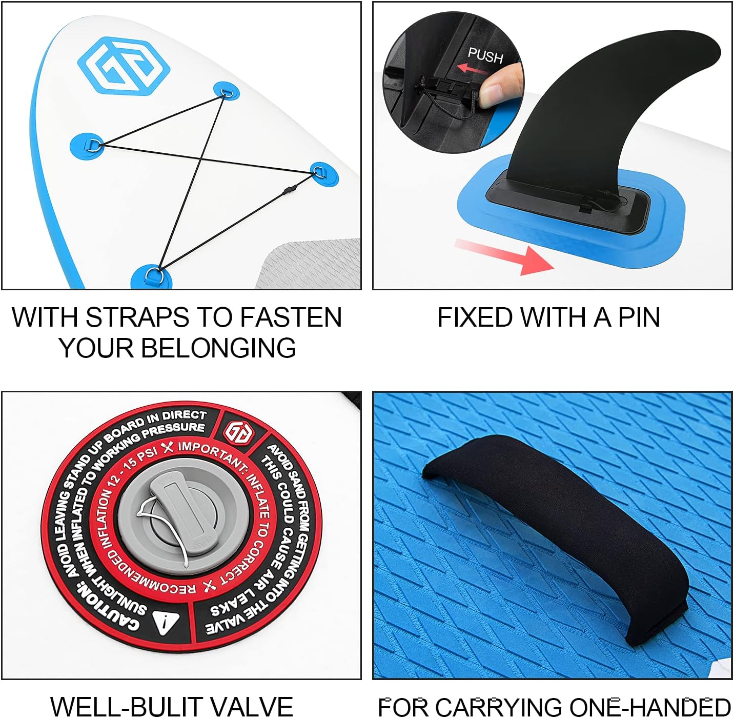 Complete ISUP Package: The Goosehill inflatable boards offer you all the versatility and performances that you will need. The package of Sailor includes a convenient storage backpack(measures 95*45*30CM), 3-piece paddle(adjustable from 89CM to 250CM), a coiled SUP leash, a removable center fin, a repair kit, and a double-action pump. This complete ISUP package will get you anywhere you want to paddle easily and comfortably.