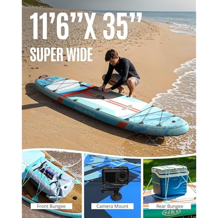 ZLX 11'6" Extra Wide Inflatable Stand Up Paddle Board SUP, Stable Non-Slip Deck Pad, Unique Fin System and Premium iSUP Accessories - Portable Backpack & Upgraded Pump for Adults, All Skill Levels