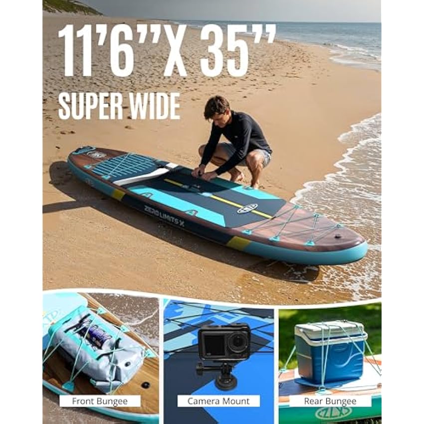 ZLX 11'6" Extra Wide Inflatable Stand Up Paddle Board SUP, Stable Non-Slip Deck Pad, Unique Fin System and Premium iSUP Accessories - Portable Backpack & Upgraded Pump for Adults, All Skill Levels