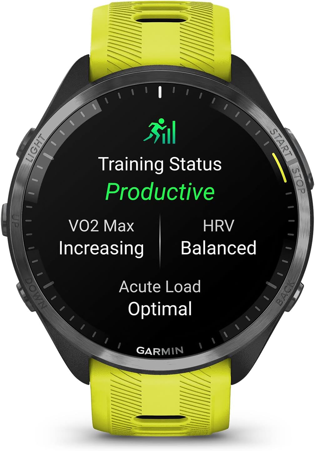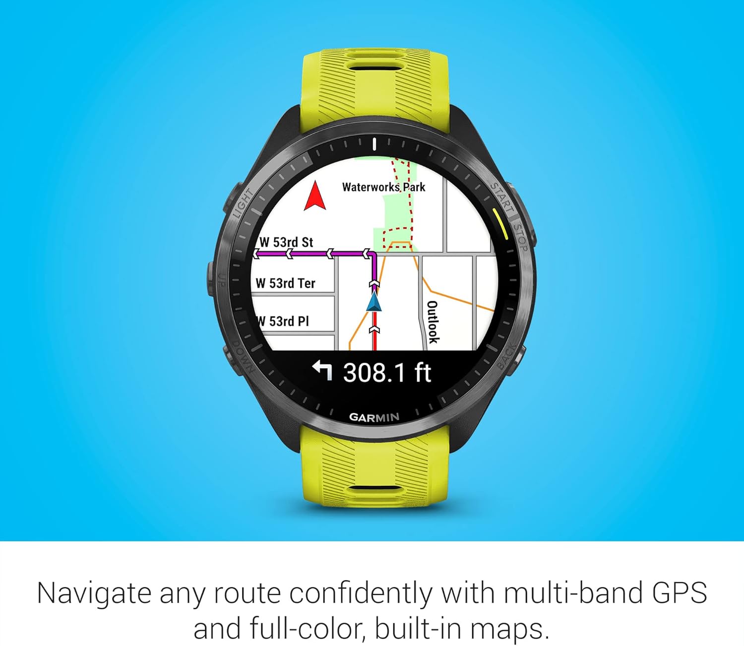 • Garmin Forerunner® 965 Running Smartwatch, Colorful AMOLED Display, Training Metrics and Recovery Insights, Black and Powder Gray, 010-02809-00